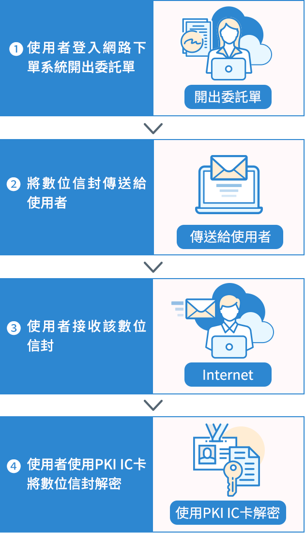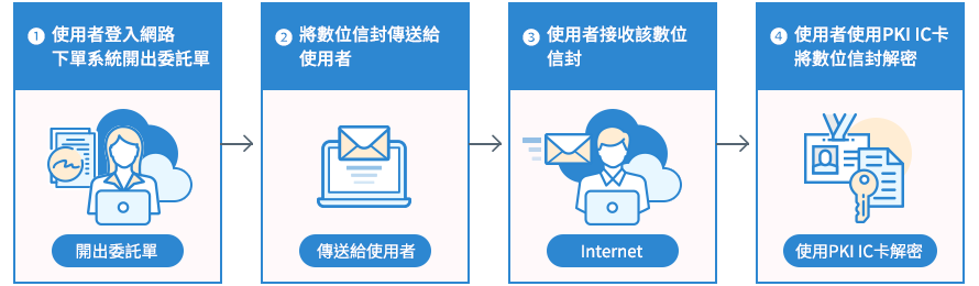 證券下單憑證能讓您的客戶方便且安全的進行證券交易,中華電信證券下單憑證服務提供客製化需求,能為客戶製作專屬的註冊中心管理介面,客戶可以自行核發、廢止憑證,證券下單憑證。